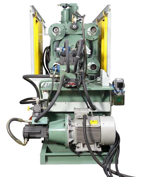 Improved and centrally located toggle system lubrication and grease system ease the operation of the machine so that an extended machine service life is ensured.